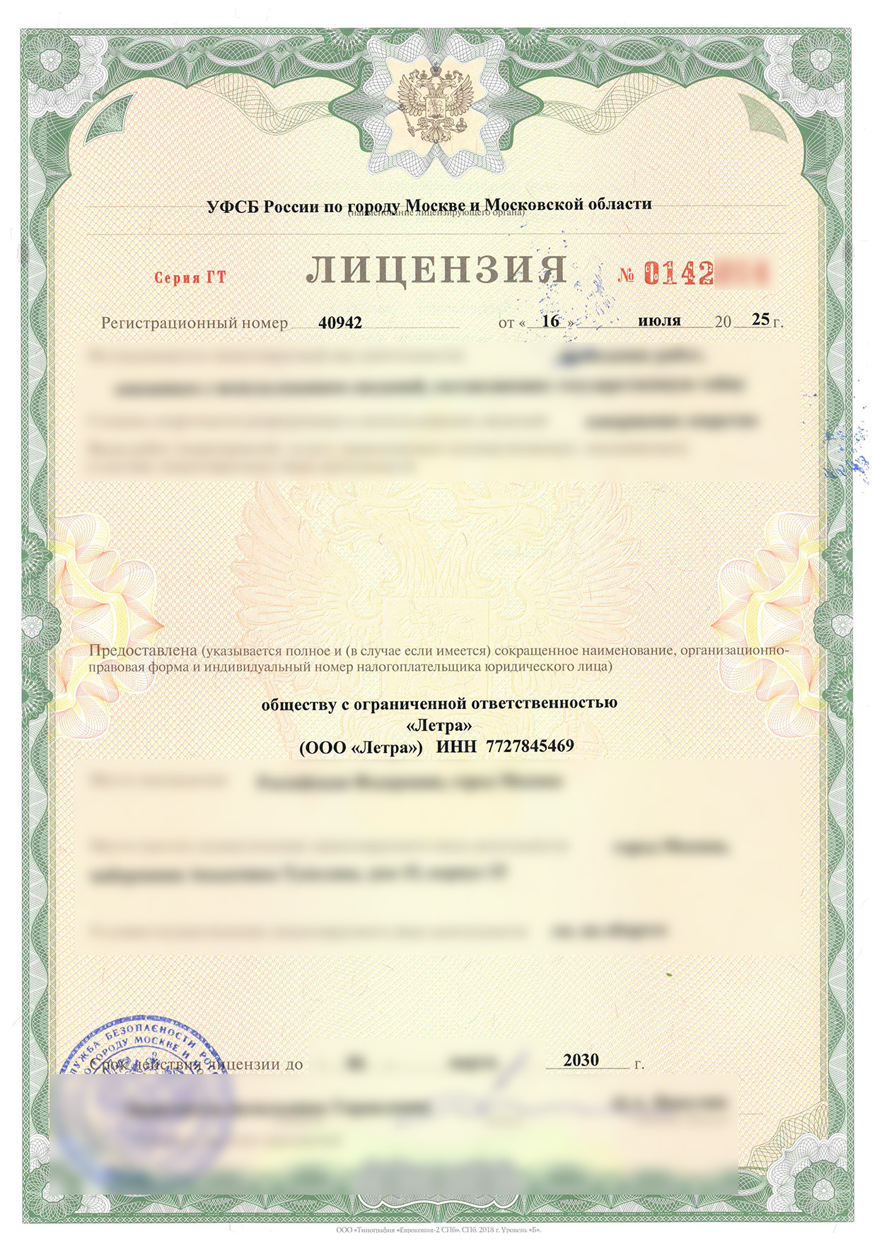 Наименование – ООО «Летра» ИНН 7727845469 КПП 771701001 ОГРН 5147746198310